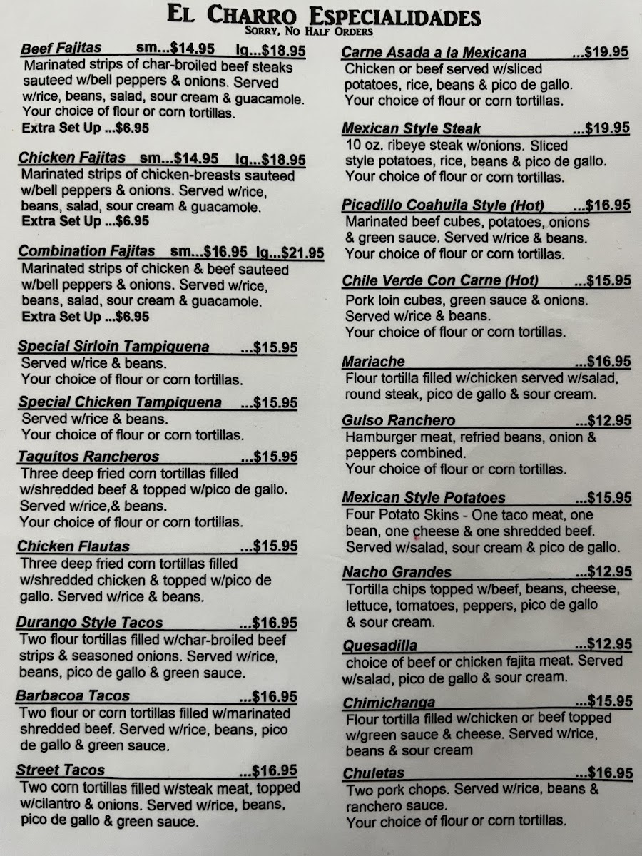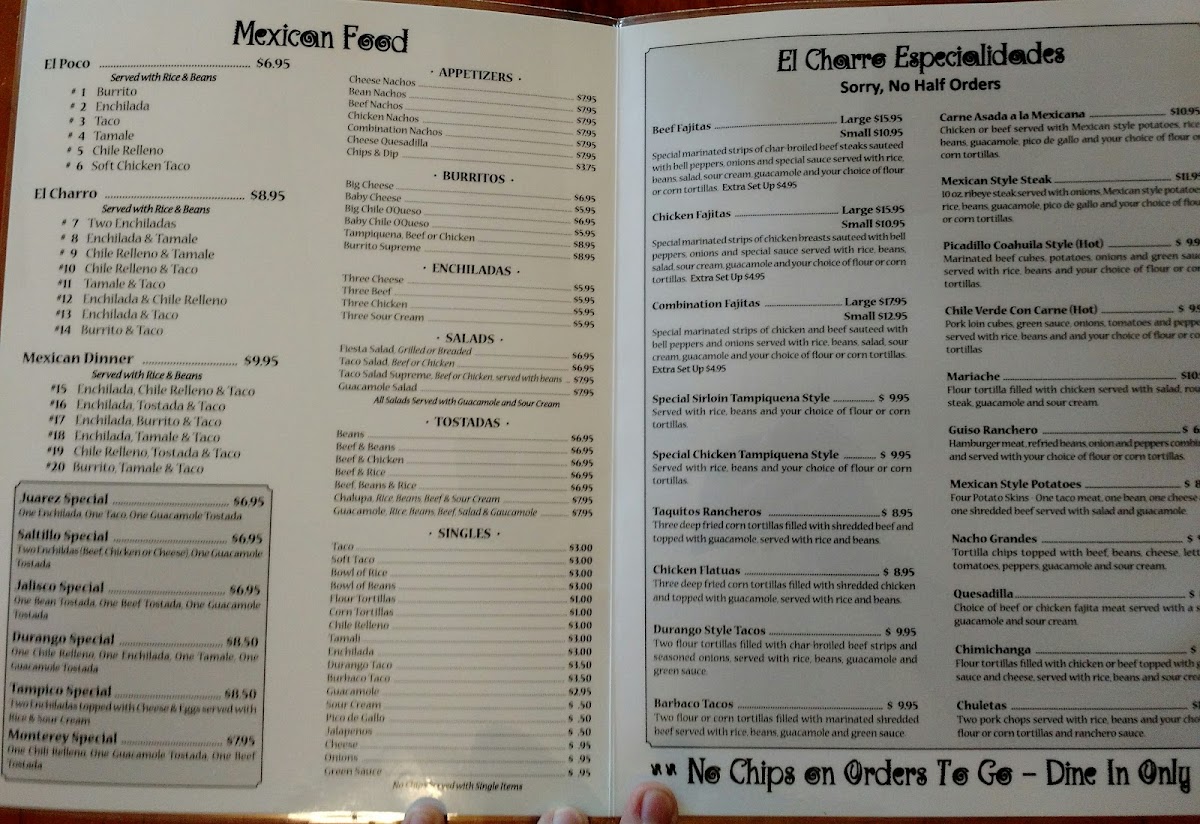 Customers consistently praise the friendly service and cozy atmosphere, with many highlighting the food as delicious and filling. While some wish for a bit more meat or authentic beverages like horchata, the overall experience remains flavorful and worthwhile. El Charro’s menu is a welcoming invitation to savor familiar Mexican staples enriched with care and passion.