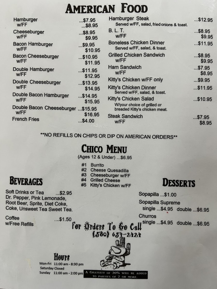 El Charro Restaurant in Carnegie, OK, offers a hearty dive into Mexican cuisine with dishes that balance flavor and comfort. Their #12 Enchilada & Chile Relleno served with rice and beans is a crowd-pleaser, delivering classic tastes with satisfying portions. The Durango Tacos, featuring charbroiled beef strips, seasoned onions, pico de gallo, and green sauce, stand out for their fresh, vibrant flavors wrapped in warm flour tortillas. For those wanting a twist, the bacon cheeseburger paired with crispy French fries showcases the kitchen’s range beyond traditional Mexican fare.